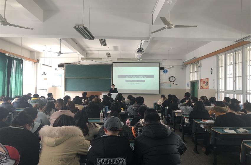 黄世凯从成绩的总体情况、专业课情况、名次变化情况等三个方面对班级期末考试成绩进行了大数据分析。在分析中还就优秀率、及格率、平均分等进行了横向、纵向比较,对存在的不足和问题进行了具体分析和评价。此外,还以班干、党员、资助学生、寝室等群体为对象进行类型化分析,让学生们在数据中清晰定位,在定位中努力反思,在反思中追求进步。