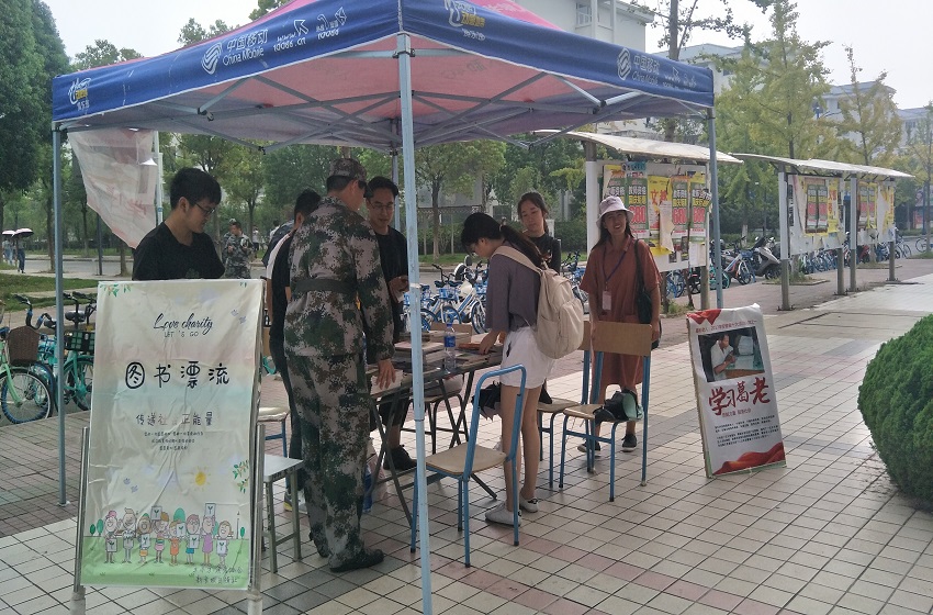 为了让广大同学了解此次活动的目的以及意义,现场有专门的宣讲人员对本次活动进行宣讲,现场还通过发放宣传单的形式增进同学对活动的了解。通过前期及现场的宣传,部分同学表示愿意为公益献爱心,他们纷纷把自己空闲的书带到现场进行捐赠。还有部分大一新生为表达自己对社会公益的支持,把他们从家里带来的书进行捐赠。在大家的共同努力下,图书的数量和种类越来越多,包括英语学习工具书、经典著作,以及杂志等,这些书都为图书义卖奠定了基础。
