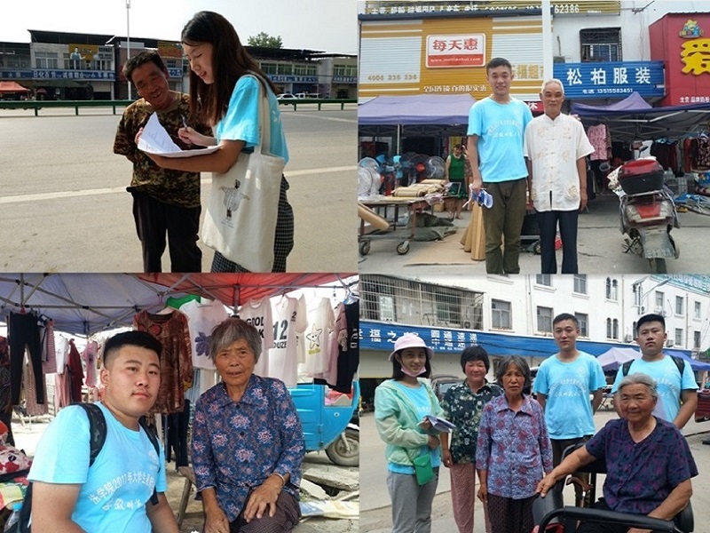 6月27日,团队乘车到达阜阳市三合镇,成员走访附近居民点,抽样调查该镇人口比例等相关情况,为调研顺利开展奠定基础。6月28日,调研团队到达三合镇集镇展开调研,成员向过往行人分发调查问卷,礼貌得体的与当地人进行交流,调研工作进展十分顺利。